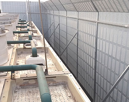 (10)防水、防塵:材料設(shè)計時充分考慮防水、防塵,在揚(yáng)塵或淋雨環(huán)境中其吸聲性能不受影響,構(gòu)造中已設(shè)置排塵排水措施,避免構(gòu)件內(nèi)部積水。微穿孔共振空腔吸聲在淋雨環(huán)境中吸聲性能不受影響,針對中低頻降噪特別明顯。