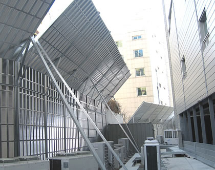廠區(qū)聲屏障特別是火力發(fā)電廠,機(jī)械設(shè)備很多,加之設(shè)備布置集中,各設(shè)備產(chǎn)生的噪聲重重疊加、相互干擾,因而形成多重噪聲污染源,而且噪聲種類多樣,既有沉悶的低頻噪聲,又有刺耳的高頻噪聲。發(fā)電廠的噪聲除來(lái)自主機(jī)及其輔助機(jī)械外,還有來(lái)自管道系統(tǒng)的主要閥件,這些噪聲頻率范圍為:低頻小于500HZ,中頻為500-800HZ,高頻大于800HZ。發(fā)電廠周圍的居住區(qū)受噪聲影響很大,造成居民的生活困擾,對(duì)發(fā)電廠的工人也會(huì)噪聲身體上的損害。因此,對(duì)其進(jìn)行治理是必要的,主要可以通過(guò)建立發(fā)電廠隔聲屏障對(duì)傳播途徑進(jìn)行控制。
