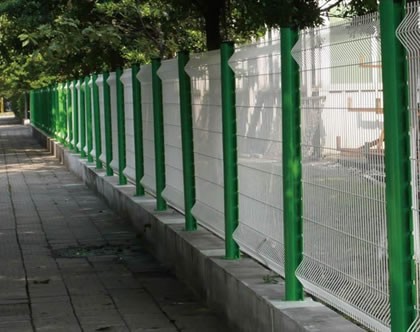 網(wǎng)片:處理方式可以浸塑和鍍鋅,也可以先鍍鋅后浸塑,網(wǎng)孔:50mm*100mm,50mm*200mm,55mm*100mm,55mm*200mm,60mm*100mm,60mm*200mm; 絲徑:Φ4.0mm,Φ4.5mm,Φ5.0mm,Φ5.5mm,Φ6.0mm; 外形尺寸:高800mm-4000mm*寬2000mm-3000mm,彎度:*般有2個(gè)彎度,3個(gè)彎度!